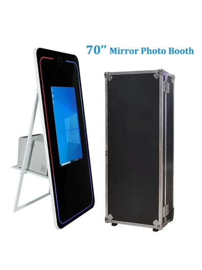 The Magic Selfie Mirror Booth is a one-of-a-kind photo-generating system that brings the latest innovation in interactive photography. This full-length mirror features a sleek, elegant design paired with a user-friendly touch-screen interface. Guests are guided through the experience with vibrant animations and fun voice prompts that make every interaction exciting and intuitive